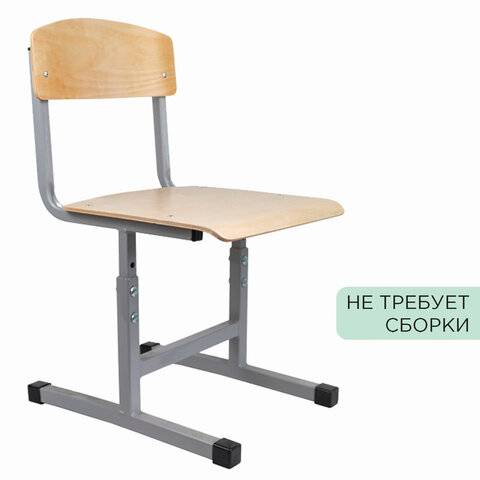 Стул ученический регулируемый СУТ.05-01, 400х375х660-740 мм, рост 4-6, серый каркас, фанера лак